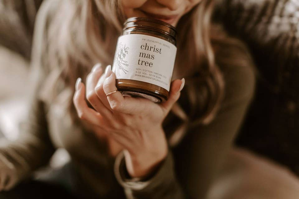 DESCRIPTION: Hunting for the perfect tree through the crisp winter air of a boundless forest. Bold fir and cool eucalyptus converge with tart red berries to create this seasonal masterpiece. Features: 50 hour burn time, gluten-free, paraben-free, phthalate-free, vegan, Recommended for living areas and bedrooms Ingredients: 100% U.S.-grown soy wax, cotton core wicks, Essential oil-infused fragrance oils