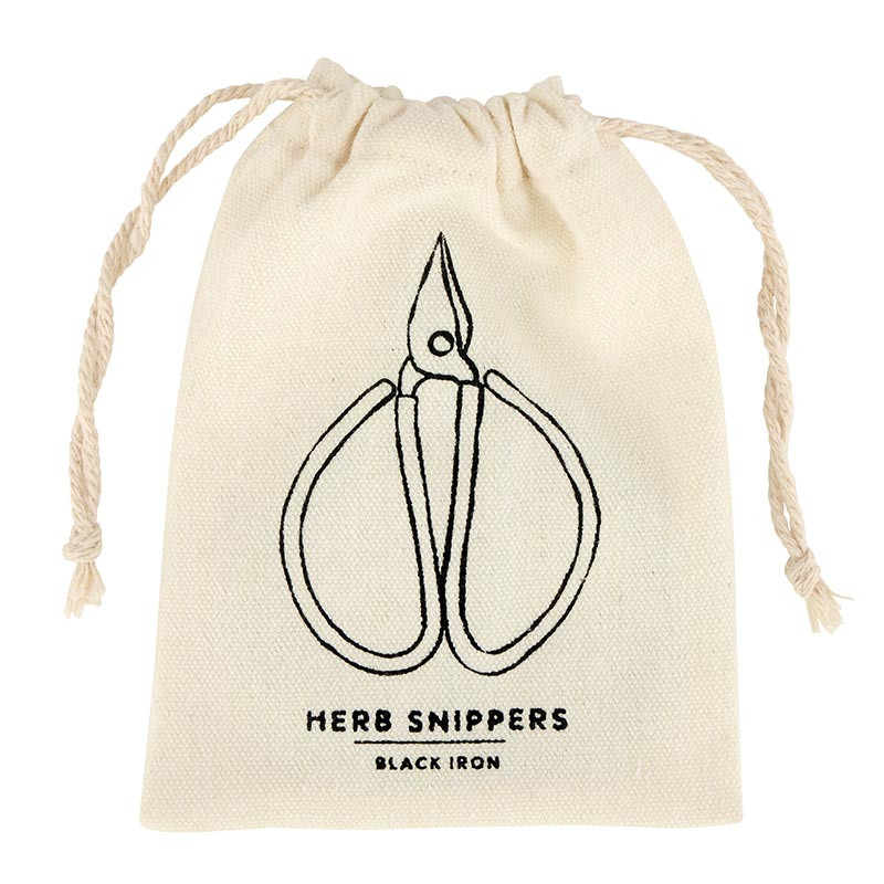 DESCRIPTION: These sleek black herb snippers are a must-have tool for any home gardener or chef. Designed with sharp, precision blades, they make harvesting herbs, microgreens, and small plants a breeze. The ergonomic handles provide a comfortable grip. Snippers come in a muslin bag for easy storage.