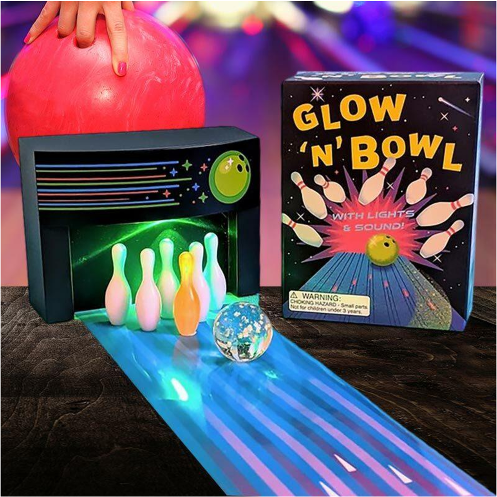 DESCRIPTION: It's desktop cosmic bowling! Are you ready to hit the lanes? It's time to set 'em up and knock 'em down with Mini Desktop Glow 'n' Bowl. Let's roll!