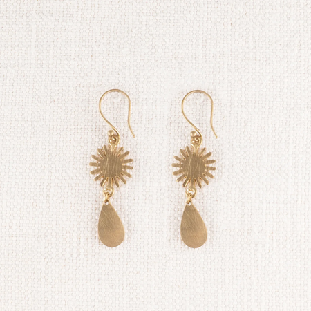 Brass Patina Earrings - Red Abstract Teardrops