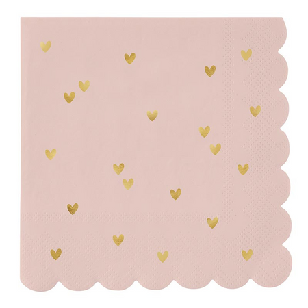 Scalloped Cocktail Napkins - Gold Foil Hearts