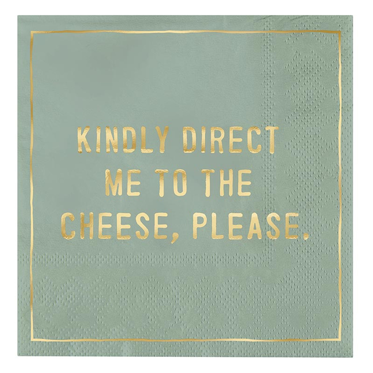 DESCRIPTION: Celebrate any occasion in style with these cocktail napkins! Each napkin reads, "KINDLY DIRECT NE TO THE CHEESE, PLEASE"