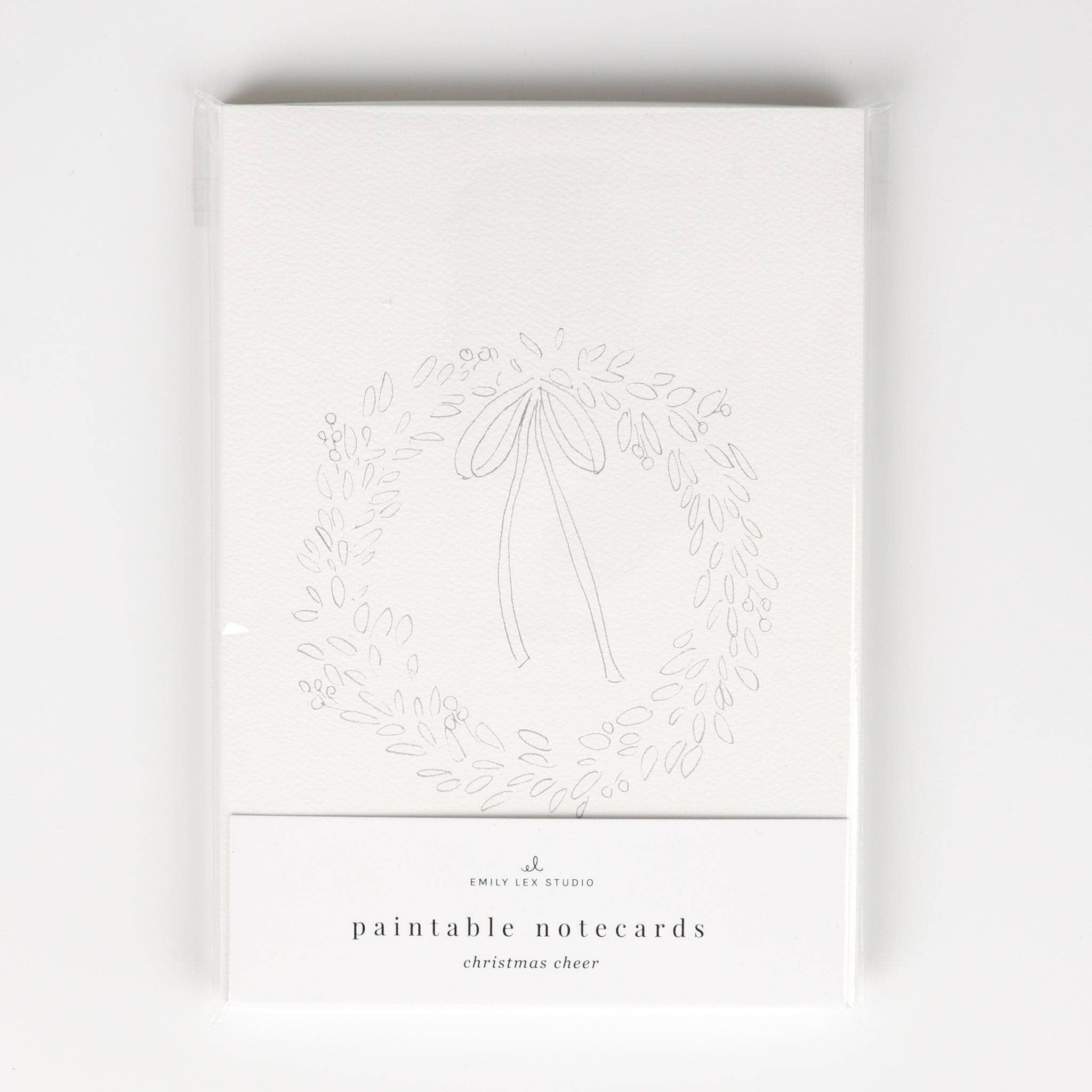 DESCRIPTION: Paint your own special Christmas cards to send to loved ones this year! Sketches are printed on the front of each card with simple instructions for you to paint in with watercolors. You'll receive eight cards with two of each illustration: wreath, snowglobe, gifts, Christmas tree truck. Perfect for artists of all ages!