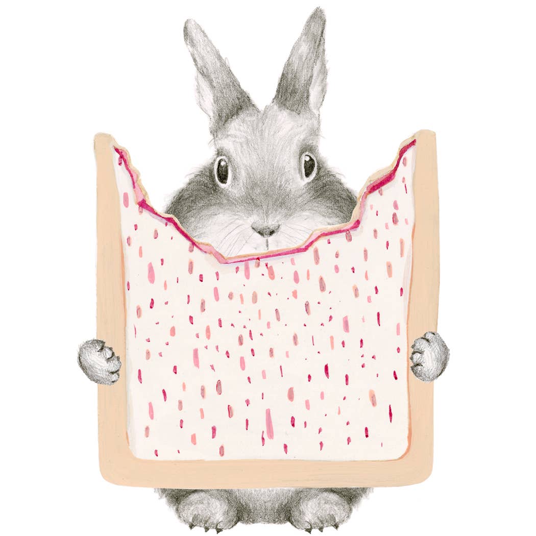 DESCRIPTION: A graphite Bunny holding a hand painted Pop Tart text reads “Love You Pop!”