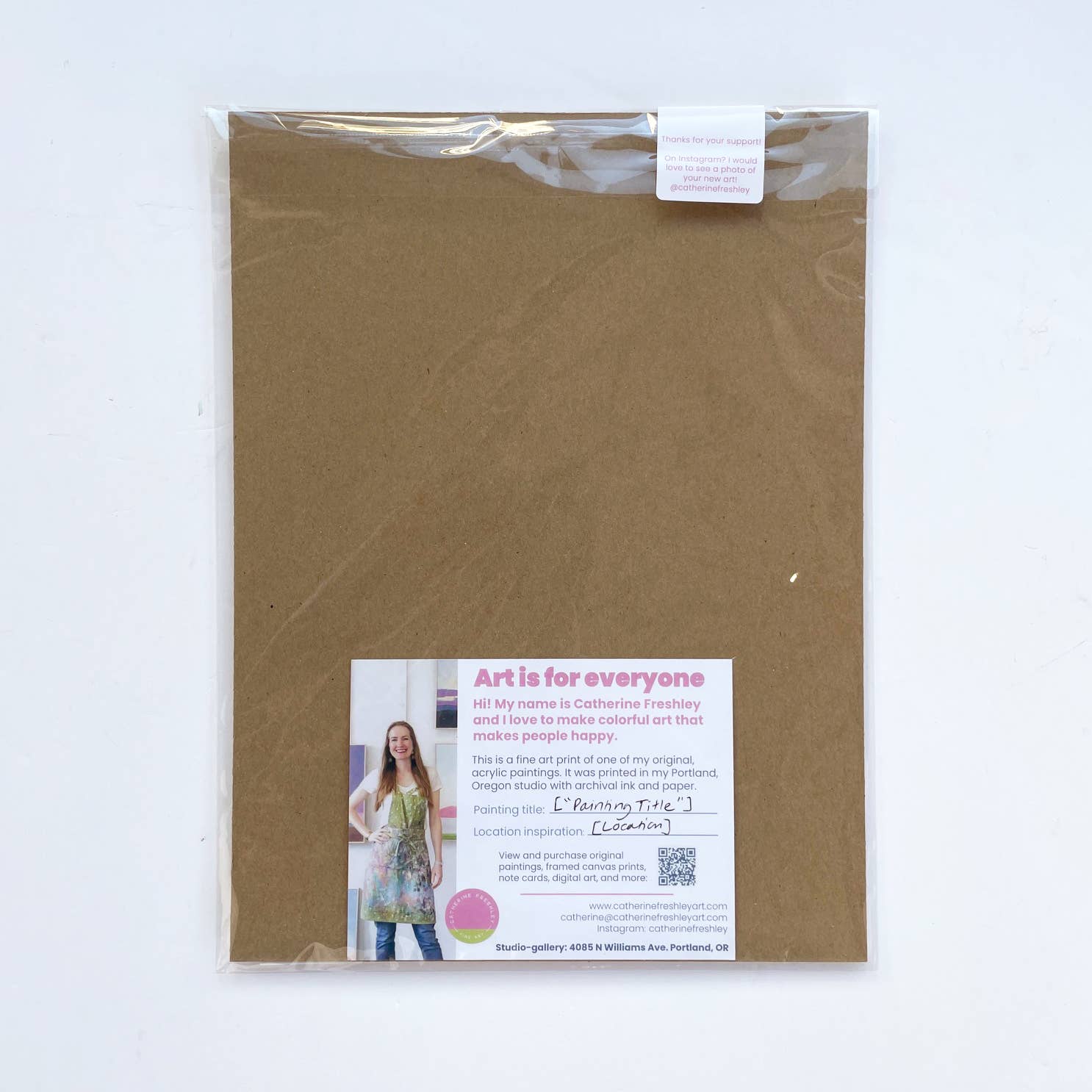 DESCRIPTION: This peaceful wall art will transport you to a warm summer evening. Fine art print of a green field with a purple, orange, and blue sunset sky. Prints have an approximately 1/4” white border and are signed by the artist. The prints are packaged in a cello-sleeve with white backing board and a branded sticker.