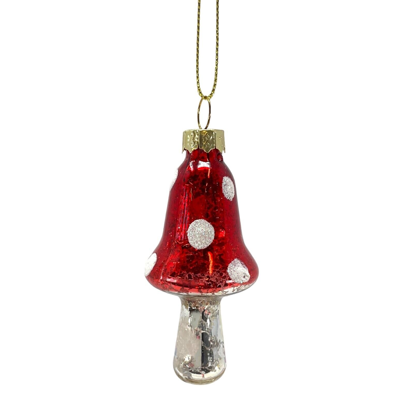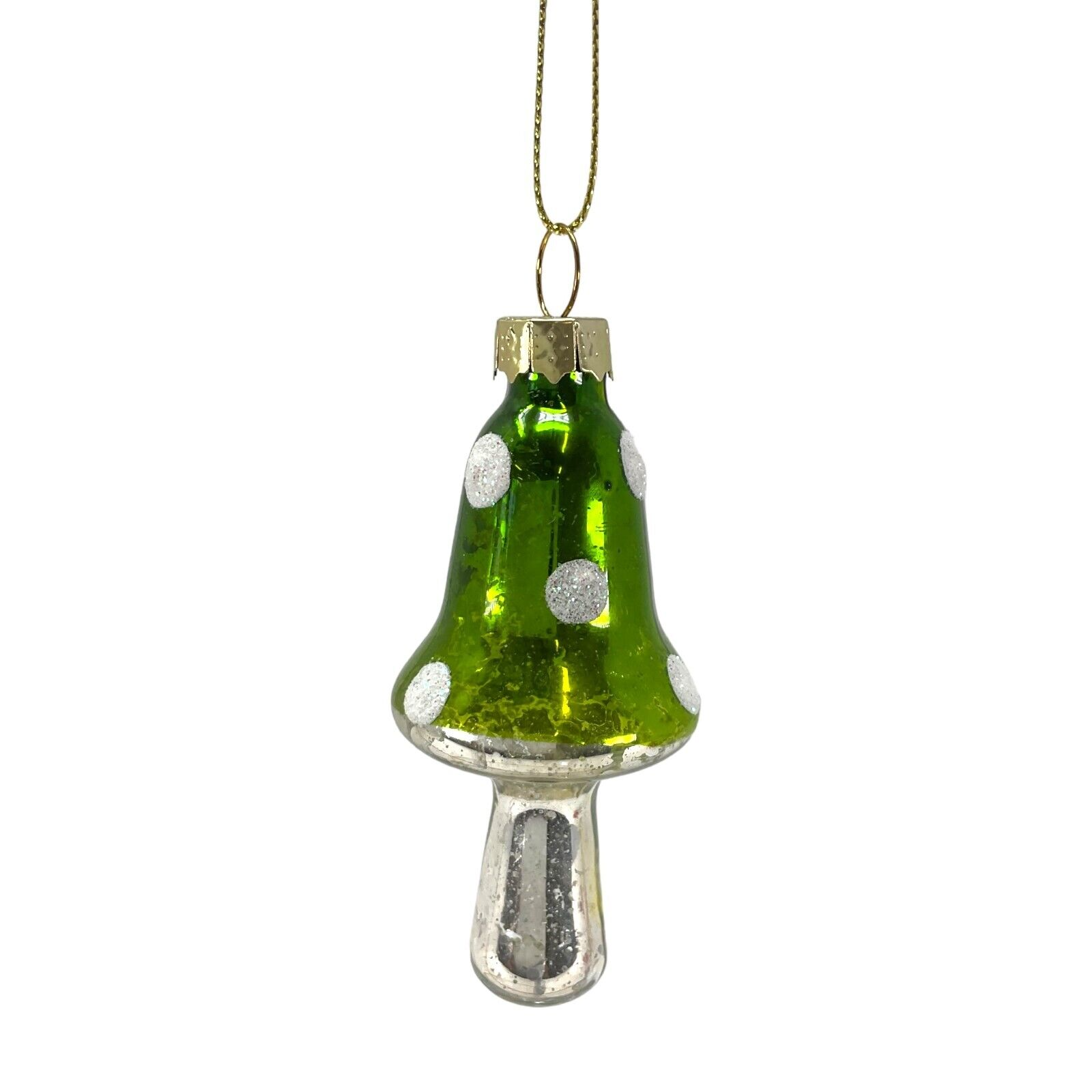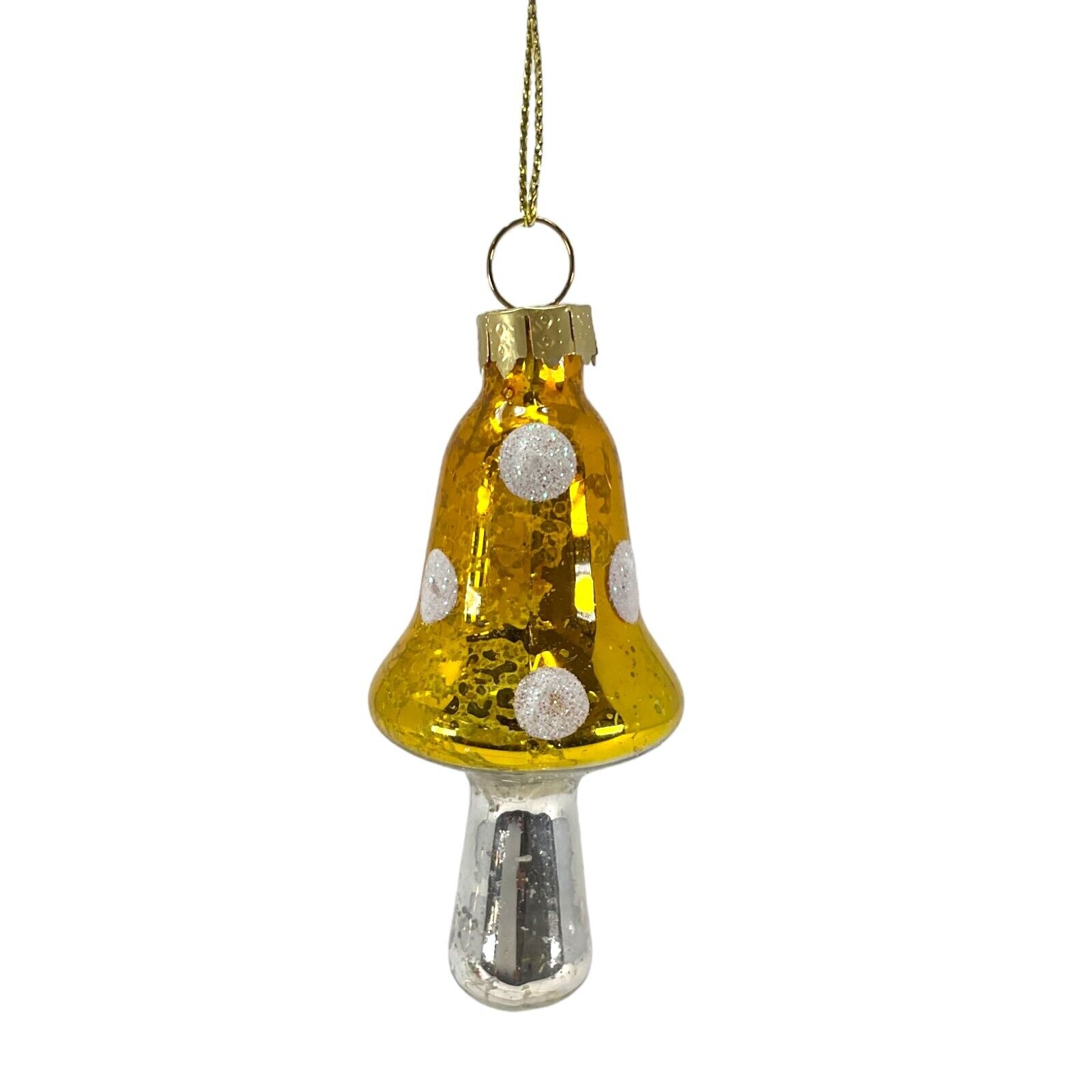 DESCRIPTION:Red, Yellow and Green Glass Holiday Mushroom Ornaments.