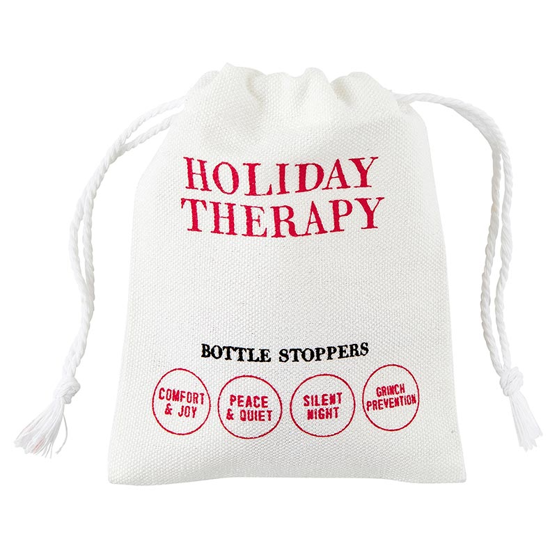 DESCRIPTIONS: These handy bottle stoppers are here for you when you can't finish that bottle of wine. Pop one on top to keep your wine fresh. A perfect gift for any wine enthusiast. This set includes 4 bottle stoppers packaged in a drawstring bag.