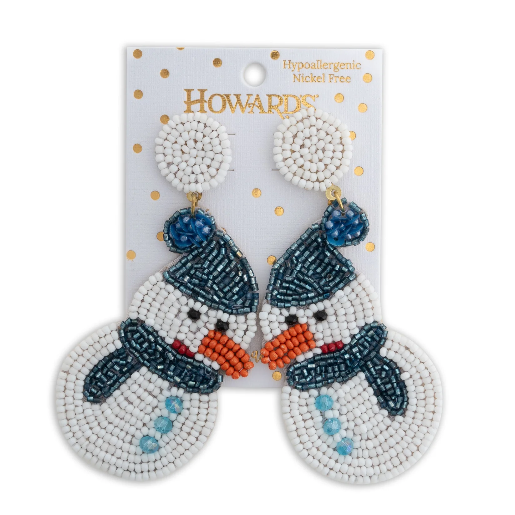 DESCRIPTION: Fun and festive! Featuring beautifully detailed snowmen made of vibrant beads with a post back closure these earrings add a festive touch to any look.
