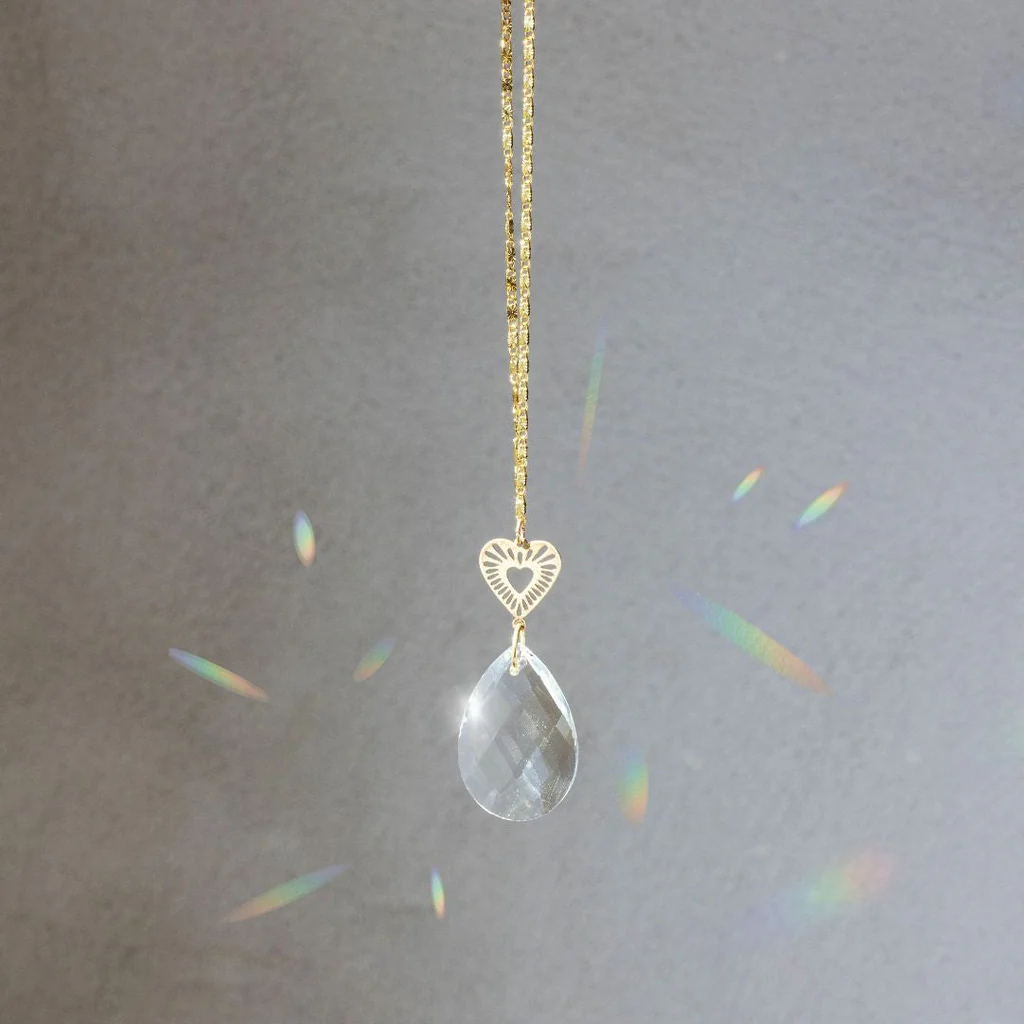 DESCRIPTION: This new Pocket Suncatcher brings a burst of rainbows and sparkle to any setting. These convenient, on-the-go light catchers are perfect for hanging in windows, adorning your favorite plants, or adding a bit of charm to your rear-view mirror. Crafted from premium gold-dipped brass and durable, shatter-resistant glass, this little rainbow maker is made to go wherever you do.