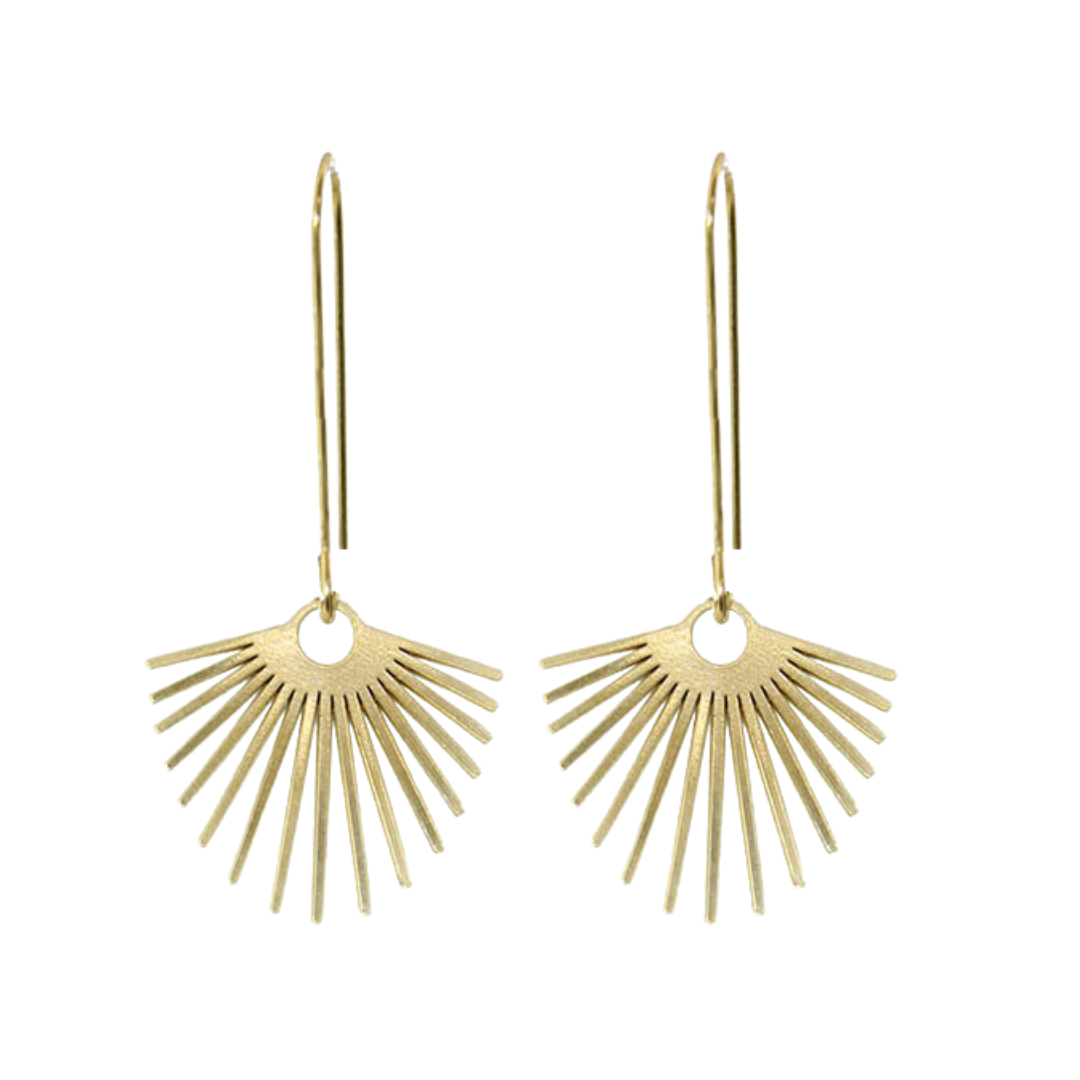 DESCRIPTION: Brass flares fan out from modern long brass ear wires. Nickel free.