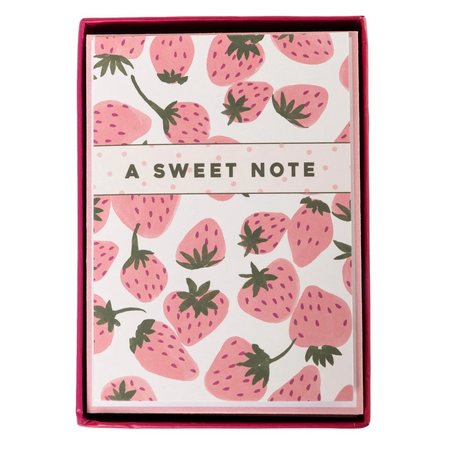 {"id":9032923447514,"title":"Pink Strawberry Notecard Set","handle":"pink-strawberry-notecard-set","description":"\u003cp\u003e\u003cspan\u003eDESCRIPTION: Experience the joy of giving with these exquisite boxed pink strawberry notecards! From elegant florals to charming illustrations, our diverse collection offers a card for every cherished connection. The front of each card reads, \"A Sweet Note\".\u003c\/span\u003e\u003c\/p\u003e\n\u003cul\u003e\n\u003cli\u003e16 elegant cards with envelopes\u003c\/li\u003e\n\u003cli\u003eHigh Quality Paper\u003c\/li\u003e\n\u003c\/ul\u003e\n\u003cdiv\u003eSIZE: Card Dimensions - 3.25\"x 4.75\"\u003c\/div\u003e","published_at":"2025-09-27T14:01:26-07:00","created_at":"2025-09-27T14:01:26-07:00","vendor":"Graphique de France","type":"","tags":["notecard","notecard set","NOTECARDS","stationary","Stationery","Stationery Set","Stationery | Greeting Cards","Stationery | Other","strawberry"],"price":1495,"price_min":1495,"price_max":1495,"available":true,"price_varies":false,"compare_at_price":null,"compare_at_price_min":0,"compare_at_price_max":0,"compare_at_price_varies":false,"variants":[{"id":46928426270938,"title":"Default Title","option1":"Default Title","option2":null,"option3":null,"sku":"35569","requires_shipping":true,"taxable":false,"featured_image":null,"available":true,"name":"Pink Strawberry Notecard Set","public_title":null,"options":["Default Title"],"price":1495,"weight":272,"compare_at_price":null,"inventory_quantity":5,"inventory_management":"shopify","inventory_policy":"deny","barcode":"W6232CB","requires_selling_plan":false,"selling_plan_allocations":[]}],"images":["\/\/www.pulp-circumstance.com\/cdn\/shop\/files\/pink-strawberries-boxed-cards-946248.png?v=1759007036","\/\/www.pulp-circumstance.com\/cdn\/shop\/files\/pink-strawberries-boxed-cards-916504.png?v=1759007037","\/\/www.pulp-circumstance.com\/cdn\/shop\/files\/pink-strawberries-boxed-cards-943186.png?v=1759007039"],"featured_image":"\/\/www.pulp-circumstance.com\/cdn\/shop\/files\/pink-strawberries-boxed-cards-946248.png?v=1759007036","options":["Title"],"media":[{"alt":null,"id":40077663797466,"position":1,"preview_image":{"aspect_ratio":1.0,"height":1200,"width":1200,"src":"\/\/www.pulp-circumstance.com\/cdn\/shop\/files\/pink-strawberries-boxed-cards-946248.png?v=1759007036"},"aspect_ratio":1.0,"height":1200,"media_type":"image","src":"\/\/www.pulp-circumstance.com\/cdn\/shop\/files\/pink-strawberries-boxed-cards-946248.png?v=1759007036","width":1200},{"alt":null,"id":40077663961306,"position":2,"preview_image":{"aspect_ratio":1.0,"height":1200,"width":1200,"src":"\/\/www.pulp-circumstance.com\/cdn\/shop\/files\/pink-strawberries-boxed-cards-916504.png?v=1759007037"},"aspect_ratio":1.0,"height":1200,"media_type":"image","src":"\/\/www.pulp-circumstance.com\/cdn\/shop\/files\/pink-strawberries-boxed-cards-916504.png?v=1759007037","width":1200},{"alt":null,"id":40077664092378,"position":3,"preview_image":{"aspect_ratio":1.0,"height":1200,"width":1200,"src":"\/\/www.pulp-circumstance.com\/cdn\/shop\/files\/pink-strawberries-boxed-cards-943186.png?v=1759007039"},"aspect_ratio":1.0,"height":1200,"media_type":"image","src":"\/\/www.pulp-circumstance.com\/cdn\/shop\/files\/pink-strawberries-boxed-cards-943186.png?v=1759007039","width":1200}],"requires_selling_plan":false,"selling_plan_groups":[],"content":"\u003cp\u003e\u003cspan\u003eDESCRIPTION: Experience the joy of giving with these exquisite boxed pink strawberry notecards! From elegant florals to charming illustrations, our diverse collection offers a card for every cherished connection. The front of each card reads, \"A Sweet Note\".\u003c\/span\u003e\u003c\/p\u003e\n\u003cul\u003e\n\u003cli\u003e16 elegant cards with envelopes\u003c\/li\u003e\n\u003cli\u003eHigh Quality Paper\u003c\/li\u003e\n\u003c\/ul\u003e\n\u003cdiv\u003eSIZE: Card Dimensions - 3.25\"x 4.75\"\u003c\/div\u003e"}