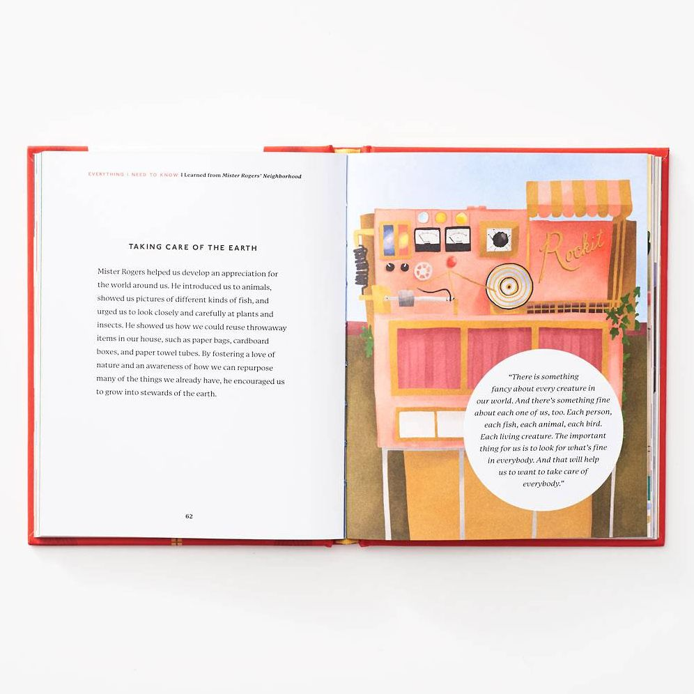 DESCRIPTION: From Fred Rogers Productions, comes a delightful gift book that shows how the wisdom of Mister Rogers' Neighborhood is as relevant for adults as it is for children. With colorful illustrations and quotes that touch on themes of kindness, empathy, self-care, respect, and love, this is the feel-good book for our times.More than just a children's television show host, Mister Rogers was the friend who helped us appreciate the good things in ourselves, in others, and in the world around us. As soon as he stepped through his front door to change into his cardigan and sneakers, we knew we would meet new people and discover new things. Revisit some of Mister Rogers' greatest guidance that we learned alongside Daniel Tiger, X the Owl, King Friday the XIII, Henrietta Pussycat, and more, including:-You are special-Be generous with your gratitude-Feed the fish-All kinds of feelings are okay-Don't forget the funAnd other caring thoughts!