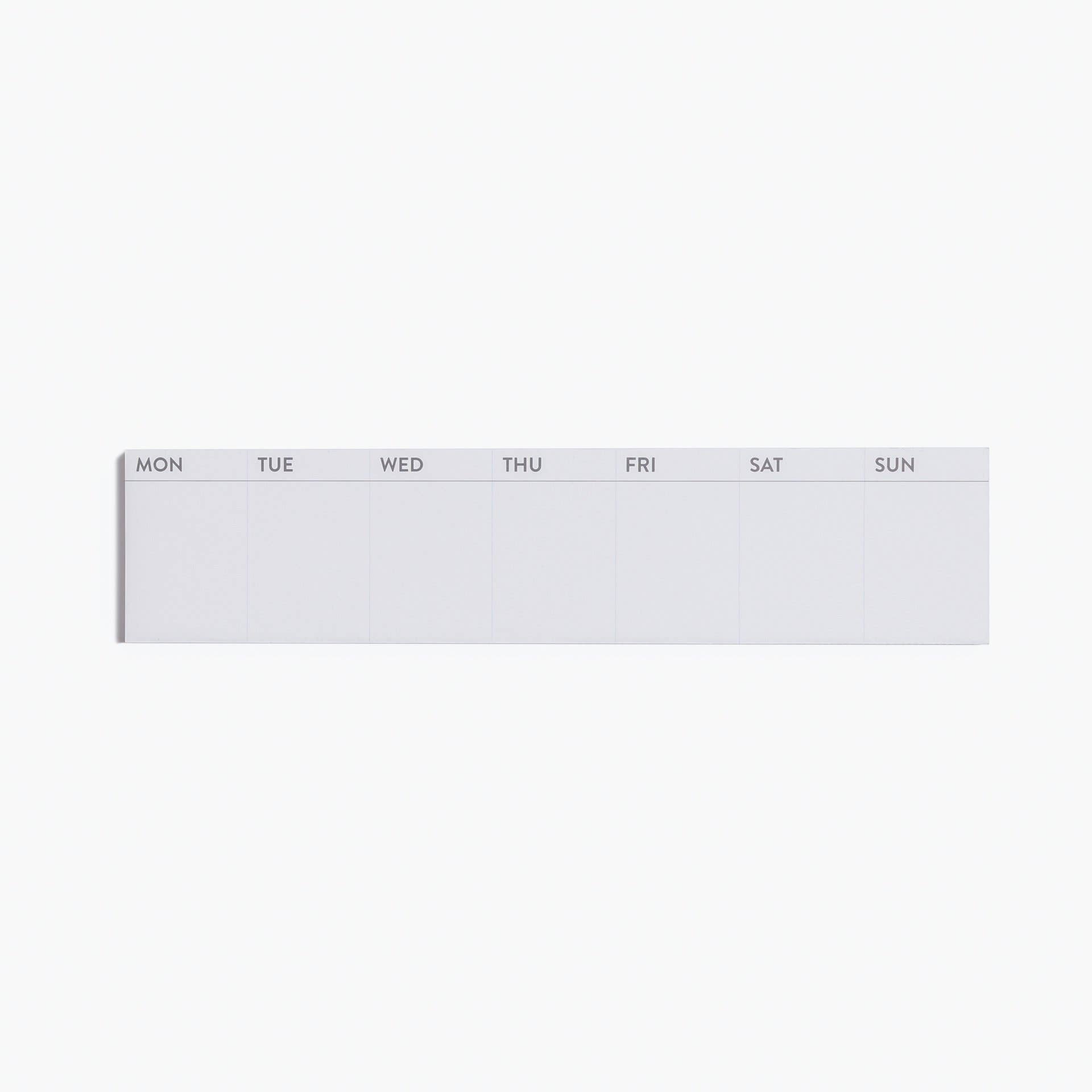 DESCRIPTION: Plan your week, stick it up, and stick to it! This pad features 54 weekly peel and stick sheets for flexible planning. Best when applied to a smooth surface for maximum staying power. FSC Chain of Custody Certified paper. Weekly Calendar with adhesive back.
